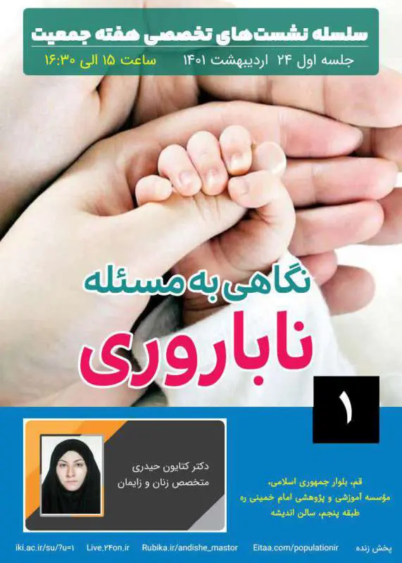 در اولین نشست تخصصی هفته جمعیت با موضوع ناباروری مطرح شد: سن زنان مهم‌ترین عامل در باروری و ناباروری در اولین نشست تخصصی هفته جمعیت سرکار خانم دکتر حیدری متخصص زنان و زایمان و پژوهشگر حوزه جمعیت...