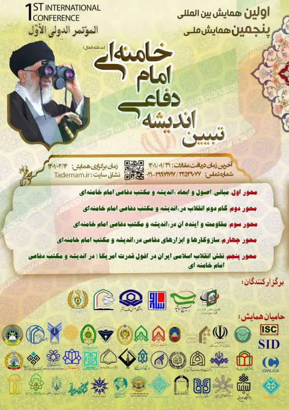 برگزاری اولین همایش بین‌المللی و پنجمین همایش ملی تبیین اندیشه دفاعی امام خامنه‌ای (مدظله العالی) با همكاری مؤسسه آموزشی و پژوهشی امام خمینی(ره) محورها و موضوعات همایش: محور اول: مبانی...