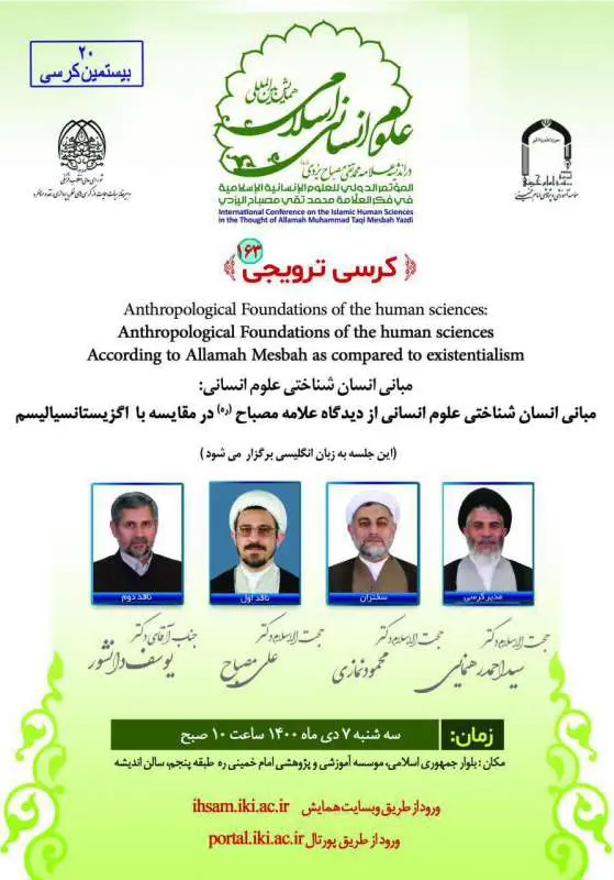 کرسی ترویجی به زبان انگلیسی: مبانی انسان‌شناختی علوم انسانی از دیدگاه علامه مصباح ره در مقایسه با اگزیستانسیالیسم