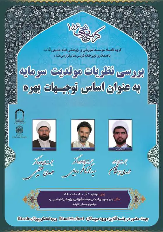 کرسی ترویجی بررسی نظریات مولدیت سرمایه به عنوان اساس توجیحات بهره