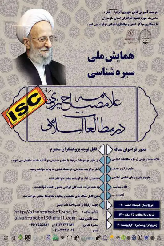مؤسسه آموزش عالی حوزوی الزهرا (س) بابل، مدیریت حوزه علمیه خواهران استان مازندران با همکاری مراکز علمی و نهادهای اجرایی برگزار می‌کند  همایش ملی سیره‌شناسی علامه مصباح یزدی(ره) در مطالعات...