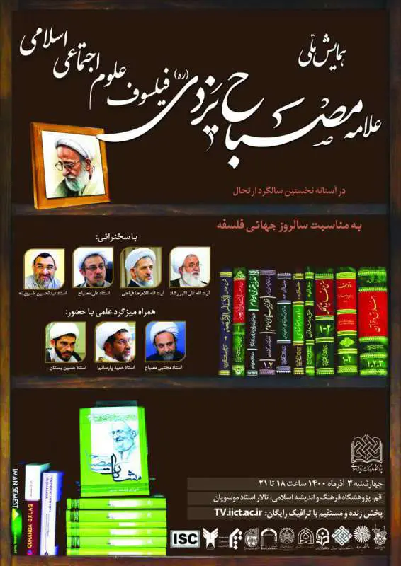 همایش ملی علامه مصباح یزدی(ره)؛ فیلسوف علوم اجتماعی اسلامی در آستانه نخستین سالگرد ارتحال علامه محمدتقی مصباح یزدی(ره) و به مناسبت روز جهانی فلسفه برگزار می‌شود  با سخنرانی...