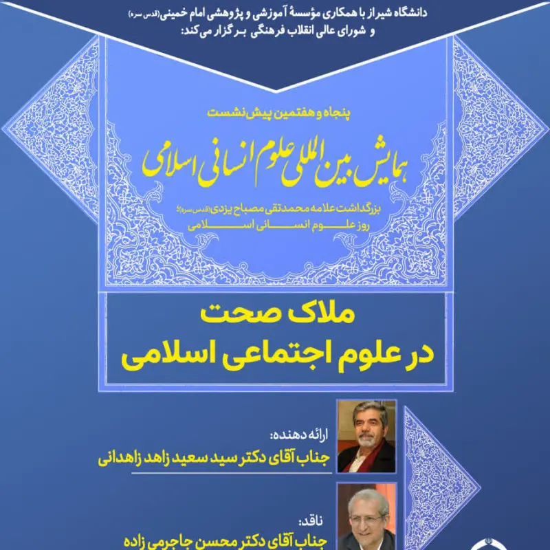دانشگاه شیراز با همکاری مؤسسه آموزشی و پژوهشی امام خمینی(ره) و انجمن تعلیم و تربیت اسلامی و شورای عالی انقلاب فرهنگی برگزار می‌کنند....