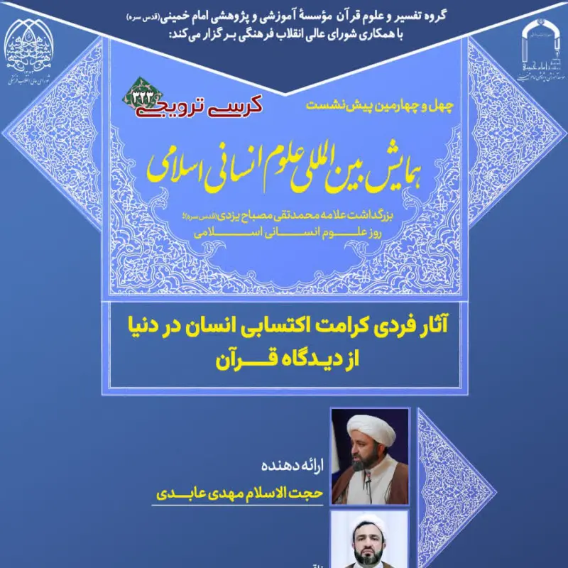 گروه تفسیر و علوم قرآن مؤسسه آموزشی و پژوهشی امام خمینی(ره) با همکاری شورای عالی انقلاب فرهنگی برگزار می‌کنند   چهل و چهارمین پیش‌...