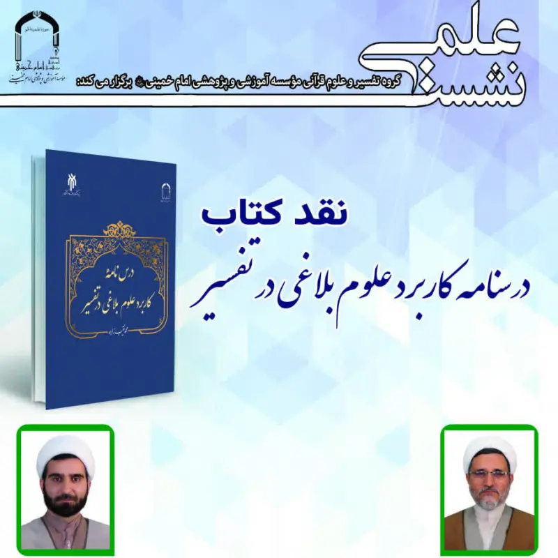 گروه تفسیر و علوم قرآنی مؤسسه آموزشی و پژوهشی امام خمینی ره برگزار می‌کند:   نقد کتاب درسنامه کاربرد علوم بلاغی در تفسیر...