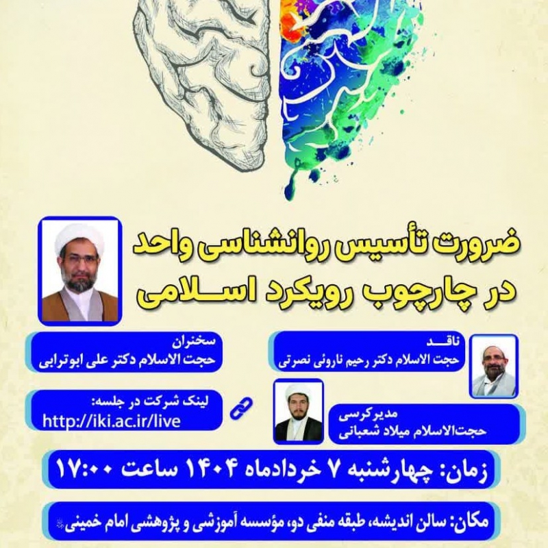 گروه روان‌شناسی مؤسسه آموزشی و پژوهشی امام خمینی‌ره با همکاری دبیرخانه کرسی‌ها برگزار می‌کند:   عنوان کرسی ترویجی [۳۰۹] :     « ضرورت تأسیس روانشناسی واحد در چارچوب...