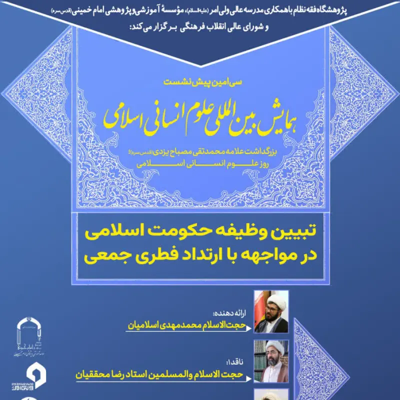 نود و نهمین کرسی از سلسله‌کرسی‌های پژوهشگاه فقه نظام و سی‌امین پیش‌نشست همایش بین‌المللی علوم انسانی اسلامی، با همکاری مدرسه عالی ولی امر علیه‌السلام، موسسه...