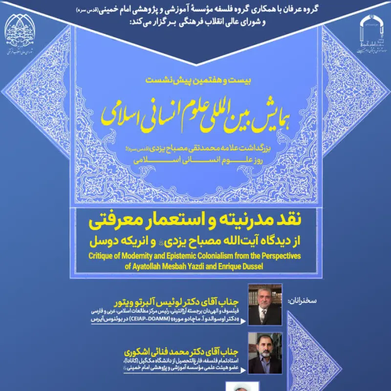 گروه عرفان با همکاری گروه فلسفه مؤسسه آموزشی و پژوهشی امام خمینی‌ره و شورای عالی انقلاب فرهنگی برگزار می‌کند: بیست و هفتمین پیش‌نشست همایش...