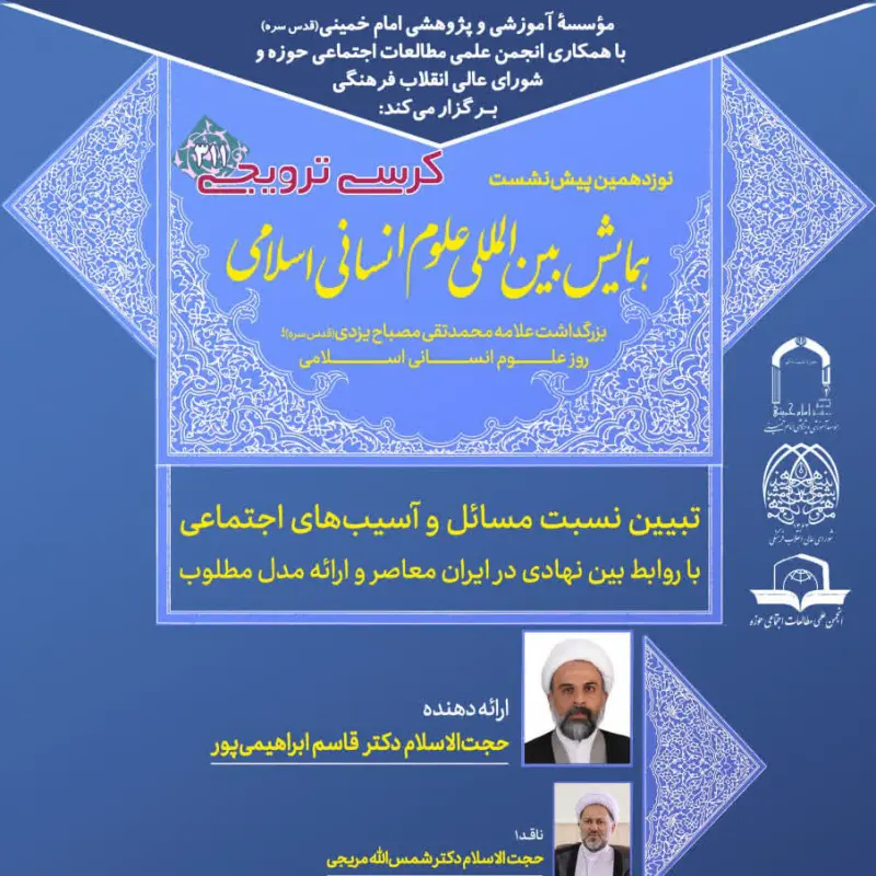 مؤسسه آموزشی و پژوهشی امام خمینی‌ره با همکاری انجمن علمی مطالعات اجتماعی حوزه و شورای عالی انقلاب فرهنگی برگزار می‌کند:...