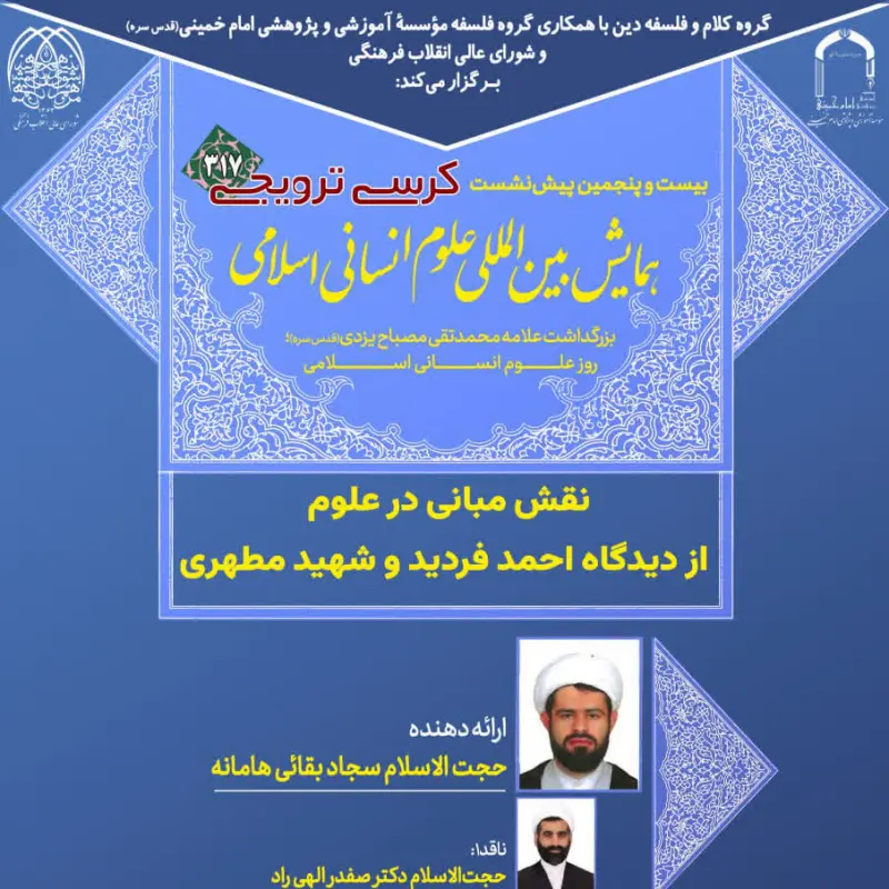 گروه کلام و فلسفه دین با همکاری گروه فلسفه مؤسسه آموزشی و پژوهشی امام خمینی‌ره و شورای عالی انقلاب فرهنگی برگزار می‌کند:...