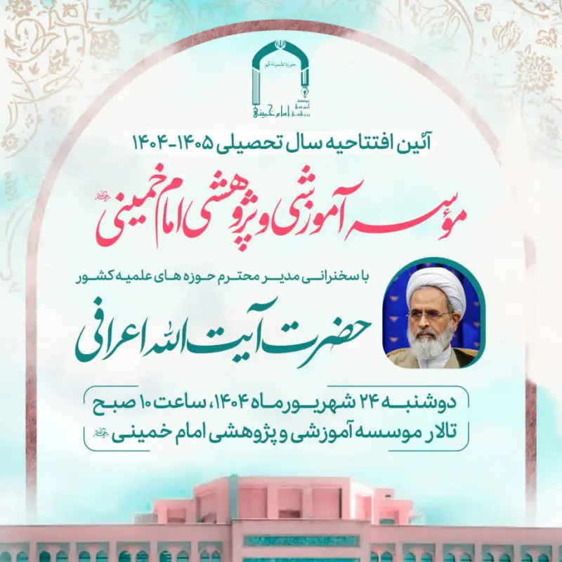 مراسم آیین افتتاحیه سال تحصیلی ۱۴۰۴ ـ ۱۴۰۵ مؤسسه آموزشی و پژوهشی امام خمینی ره  با سخنرانی مدیر محترم حوزه‌های علمیه کشور حضرت آیت‌الله اعرافی در تاریخ  دوشنبه ۲۴ شهریورماه ۱۴۰۴ ساعت ۱۰...