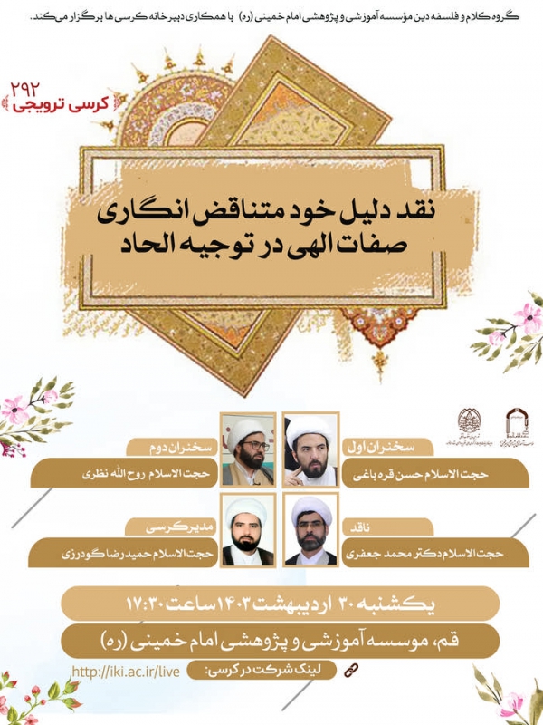 کرسی ترویجی با موضوع نقد دلیل خود متناقض انگاری صفات الهی در توجیه الحاد