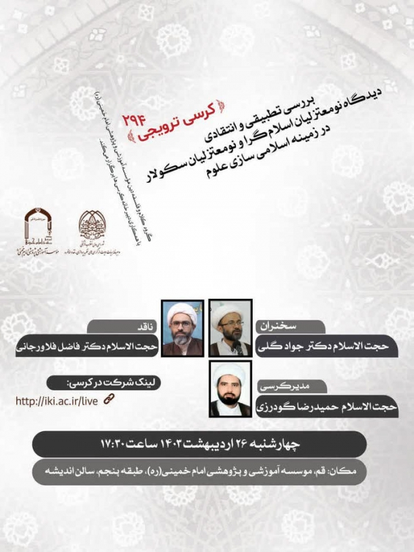 برگزاری کرسی ترویجی با موضوع بررسی تطبیقی و انتقادی دیدگاه نو معتزلیان اسلام گرا و نو معتزلیان سکولار در زمینه اسلامی سازی علوم