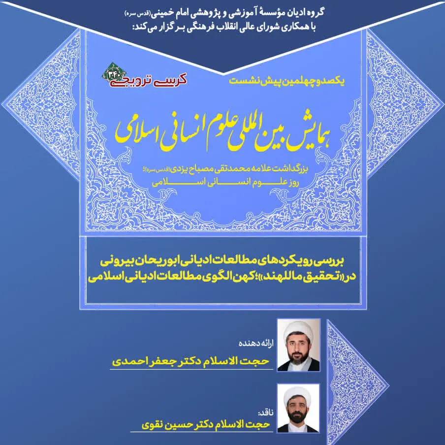 گروه ادیان مؤسسه آموزشی و پژوهشی امام خـمینی (قدس سره) با همکاری شورای عالی انقلاب فرهنگی برگزار می کند:   یکصد و چهلمین...