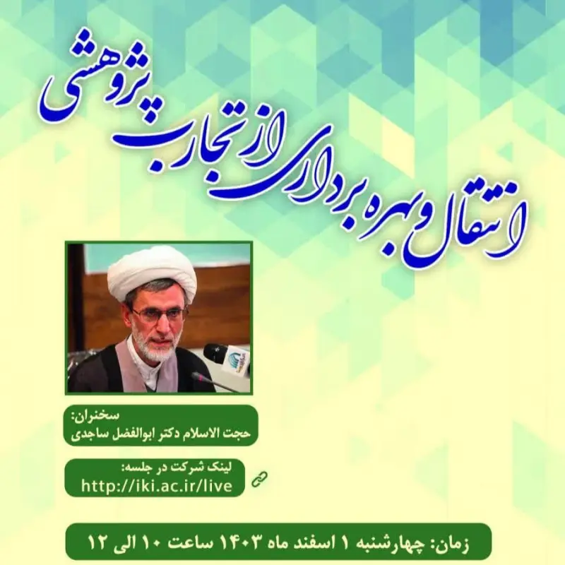 گروه کلام و فلسفه دین مؤسسه آموزشی و پژوهشی امام خمینی‌ره برگزار می‌کند:  نشست علمی با عنوان:     « انتقال و بهره‌برداری از تجارب پژوهشی »   سخنران...