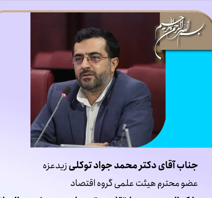 بسمه تعالی  جناب آقای دکتر محمد جواد توکلی زید عزه عضو محترم هیئت علمی گروه اقتصاد   با کمال مسرت، ارتقای مرتبه علمی حضرت‌عالی از دانشیاری به استادی را به شما...