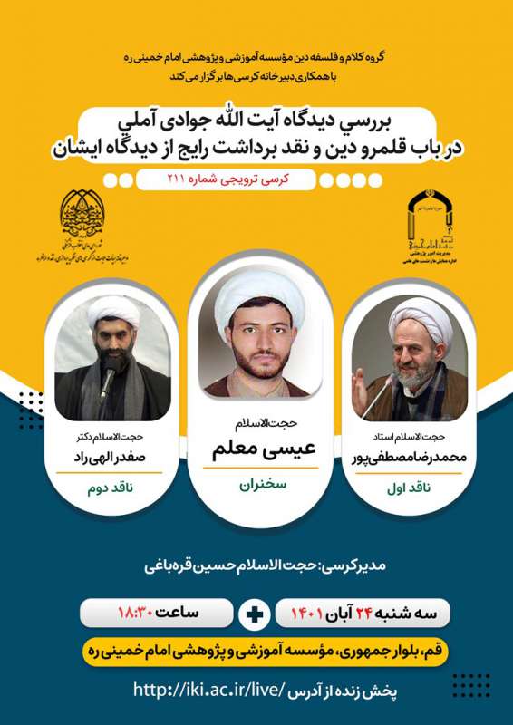 کرسی ترویجی بررسی دیدگاه آیت‌الله جوادی آملی در باب قلمرو دین و نقد برداشت رایج از دیدگاه ایشان