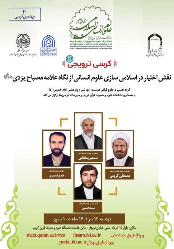 کرسی ترویجی نقش اختیار در اسلامی سازی علوم انسانی از نگاه علامه مصباح یزدی(ره)