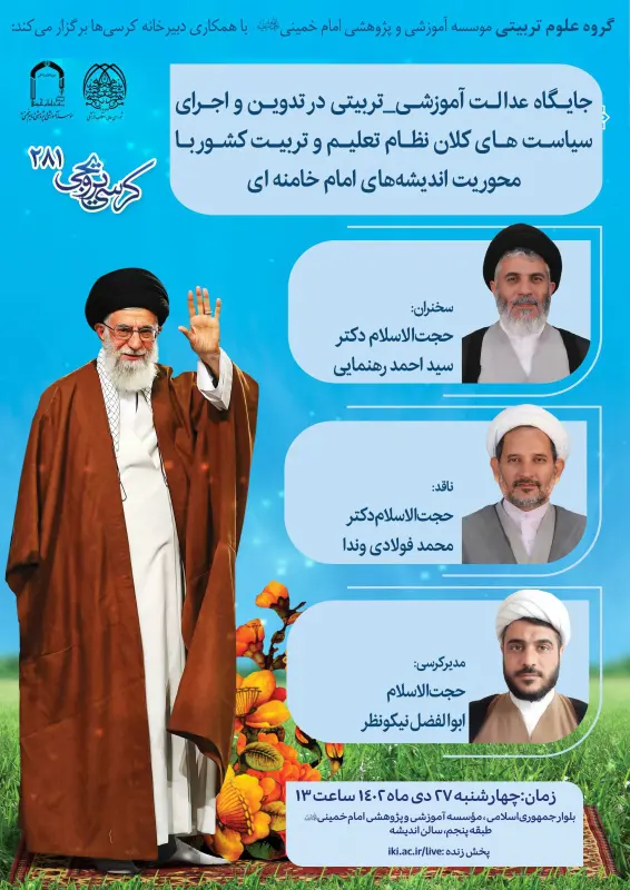کرسی ترویجی با موضوع بررسی جایگاه عدالت آموزشی ـ تربیتی در تدوین و اجرای سیاست‌های کلان نظام تعلیم و تربیت کشور با محوریت اندیشه‌های امام خامنه‌ای مد ظله العالی