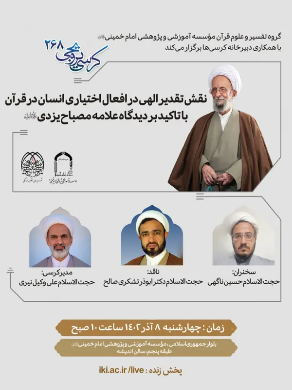 برگزاری کرسی ترویجی با موضوع نقش تقدیر الهی در افعال اختیاری انسان در قرآن با تأکید بر دیدگاه علامه مصباح یزدی(ره)