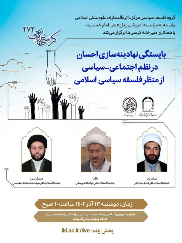 کرسی ترویجی با موضوع بایستگی نهادینه‌سازی احسان در نظم اجتماعی سیاسی از منظر فلسفه سیاسی اسلامی