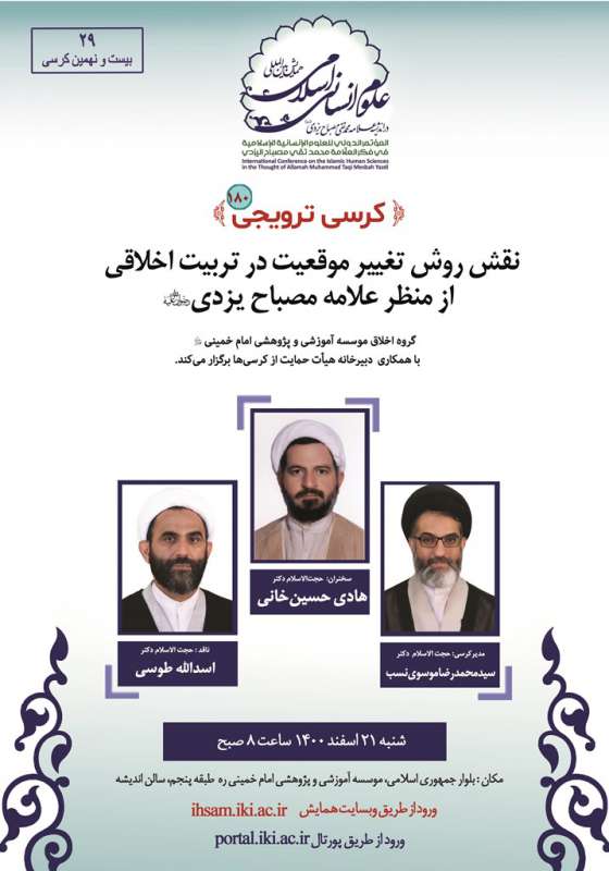 کرسی ترویجی نقش روش تغییر موقعیت در تربیت اخلاقی از منظر علامه مصباح یزدی(ره)
