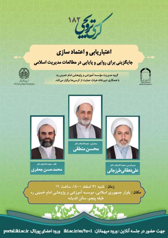 پژوهشکده امامت و مؤسسه آموزشی و پژوهشی امام خمینی (ره) برگزار می‌کند یکصد و هفتاد و هشتمین کرسی علمی ترویجی مؤسسه آموزشی و پژوهشی امام خمینی(ره) موضوع: بررسی روایات و گزارش‌های تاریخی قیام‌های...