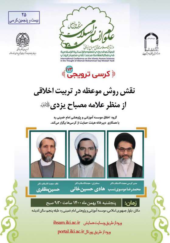 کرسی ترویجی نقش روش موعظه در تربیت اخلاقی از منظر علامه مصباح یزدی(ره)