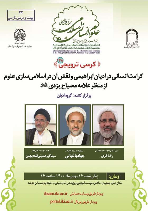كرسی ترویجی كرامت انسانی در ادیان ابراهیمی و نقش آن در اسلامی‌سازی علوم از منظر علامه مصباح یزدی(ره)