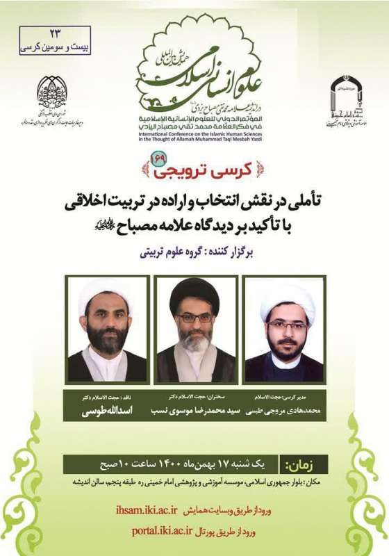 كرسی ترویجی تأملی در نقش انتخاب و اراده در تربیت اخلاقی با تأكید بر دیدگاه علامه مصباح(ره)