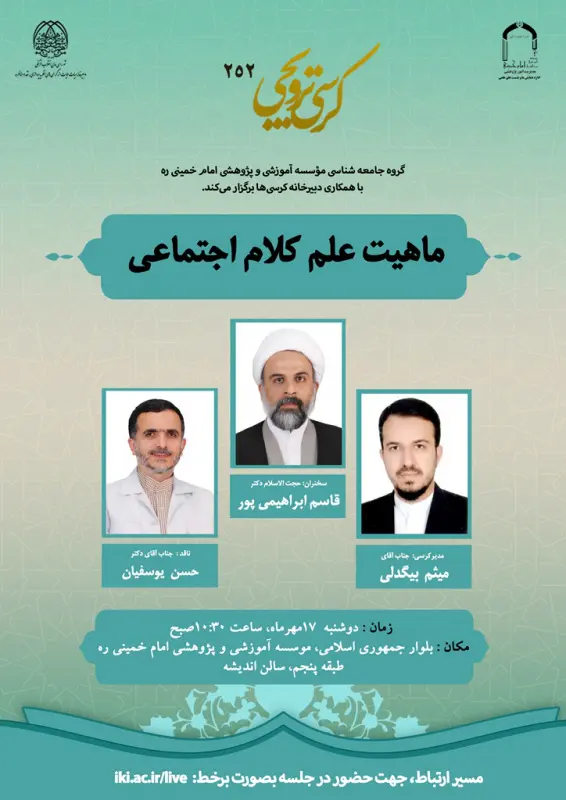 حضور مجازی iki.ac.ir/live   گزارشی از کرسی ترویجی "ماهیت کلام اجتماعی" علم کلام دائم تلاش می‌کند دیگران را نسبت به یک مسئله اقناع کند از سوی دیگر آنچه زمینه‌ساز شکل‌گیری و...