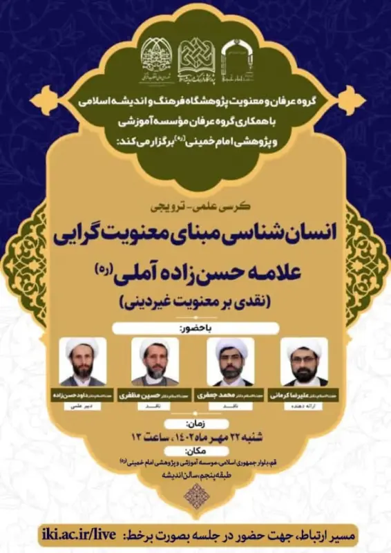 برگزاری کرسی ترویجی با موضوع انسان‌شناسی مبنای معنویت‌گرایی علامه حسن‌زاده آملی(ره) (نقدی بر معنویت غیردینی)