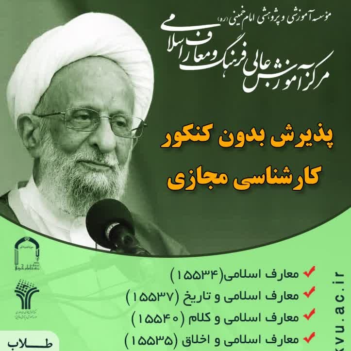 اعلام شرایط و چگونگی ثبت‌نام کارشناسی پیوسته (مجازی) ۱۴۰۴ مرکز آموزش عالی فرهنگ و معارف اسلامی وابسته به مؤسسه آموزشی و پژوهشی امام خمینی (ره) پذیرش صرفاً بر اساس...