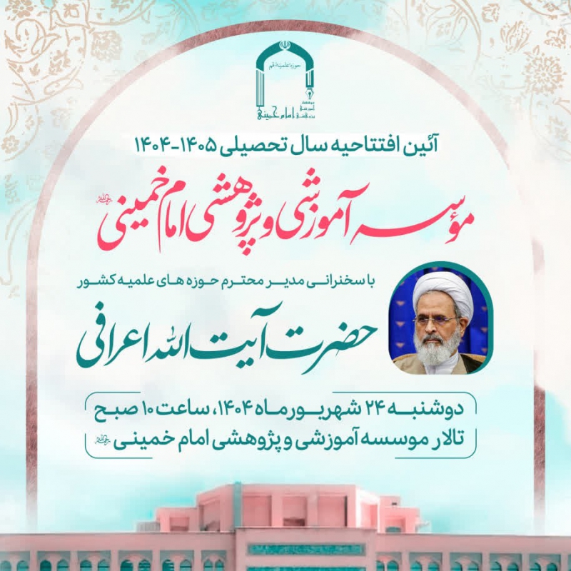 مراسم آیین افتتاحیه سال تحصیلی ۱۴۰۴ ـ ۱۴۰۵ مؤسسه آموزشی و پژوهشی امام خمینی ره  با سخنرانی مدیر محترم حوزه‌های علمیه کشور حضرت آیت‌الله اعرافی در تاریخ  دوشنبه ۲۴ شهریورماه ۱۴۰۴ ساعت ۱۰...