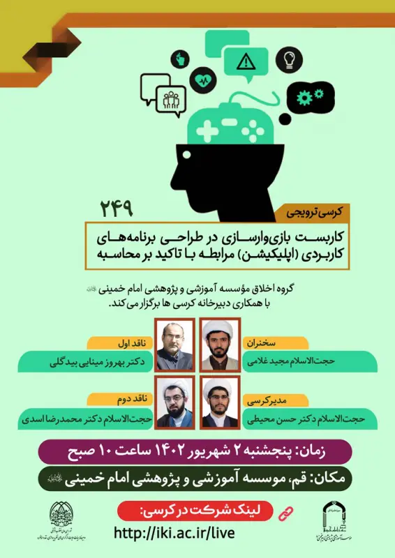 کرسی ترویجی کاربست بازی‌وارسازی در طراحی برنامه‌های کاربردی (اپلیکیشن) مرابطه با تأکید بر محاسبه