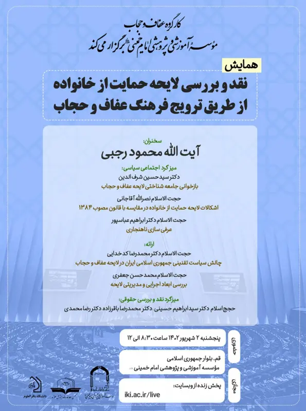 برگزاری همایش نقد و بررسی لایحه حمایت از خانواده از طریق ترویج فرهنگ عفاف و حجاب