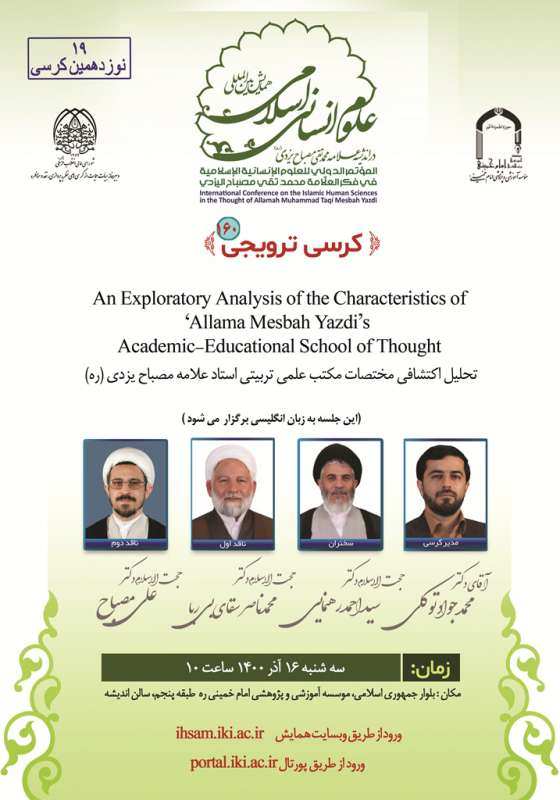 موضوع: An Exploratory Analysis of the Characteristics of 'Allama Mesbah Yazdi's Academic-Educational School of Thought تحلیل اكتشافی مختصات مكتب علمی تربیتی استاد علامه مصباح یزدی(ره...