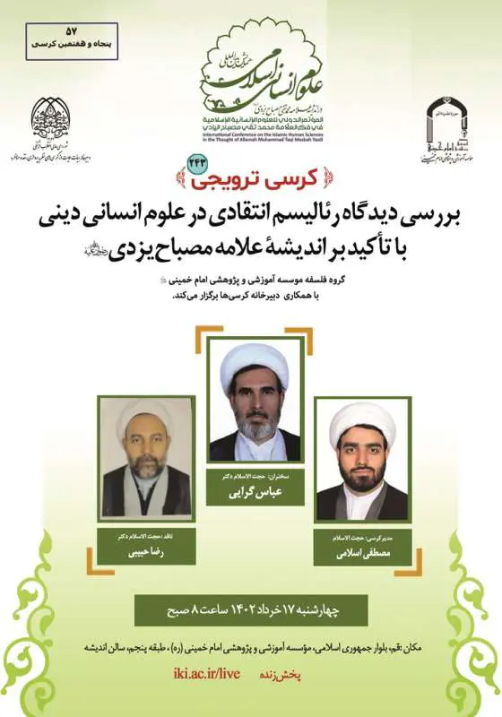 کرسی ترویجی بررسی دیدگاه رئالیسم انتقادی در علوم انسانی دینی با تأکید بر اندیشه علامه مصباح یزدی(ره)