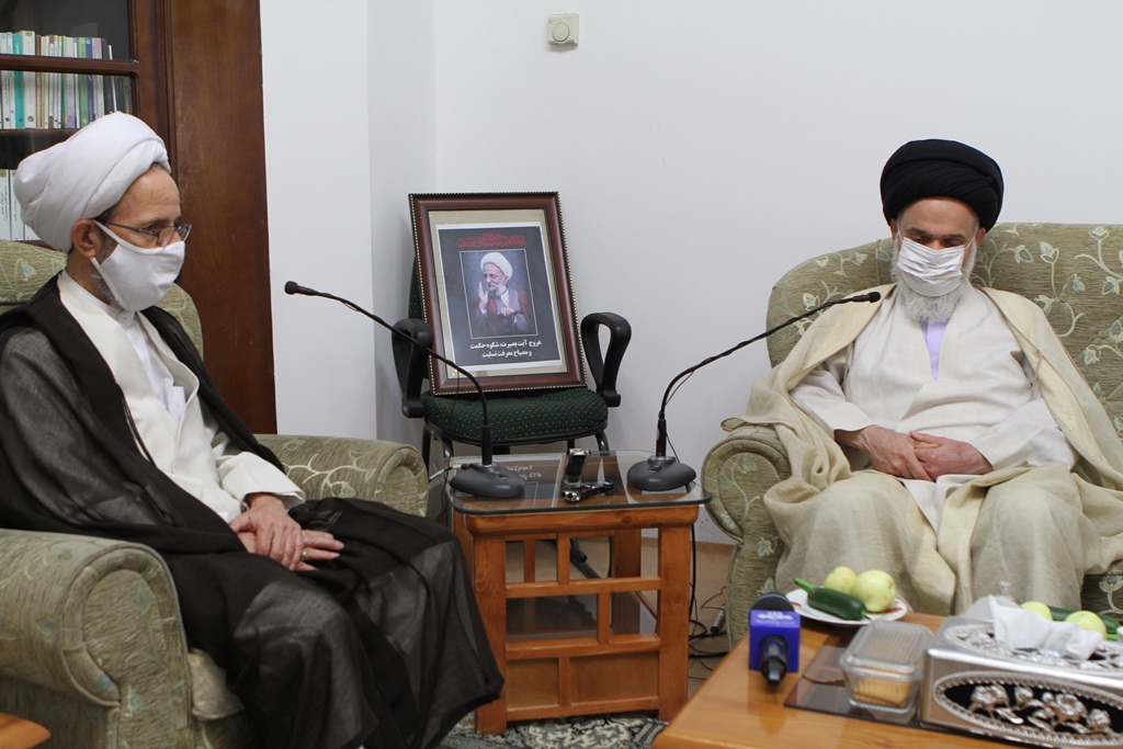 دیدار حضرت آیت‌الله حسینی بوشهری با حضرت آیت‌الله رجبی در مؤسسه امام خمینی(ره)