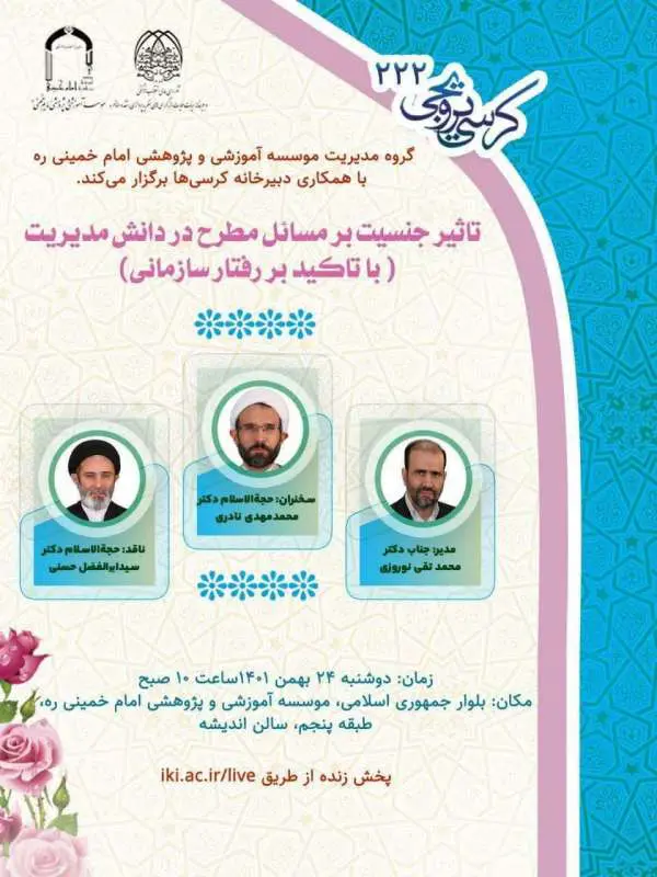 کرسی ترویجی تأثیر جنسیت بر مسائل مطرح در دانش مدیریت (با تأکید بر رفتار سازمانی)