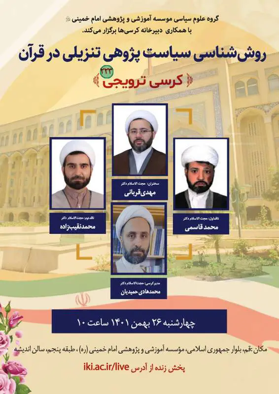 کرسی ترویجی روش‌شناسی سیاست پژوهی تنزیلی در قرآن
