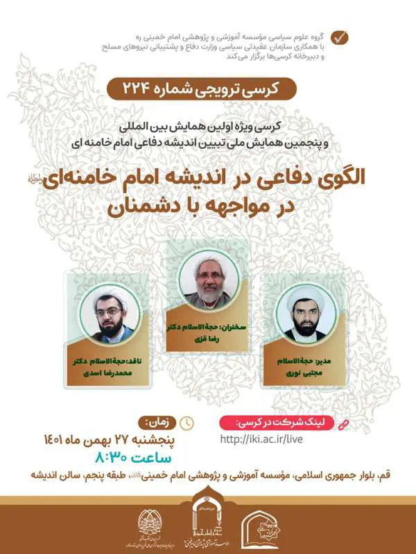 کرسی ترویجی الگوی دفاعی در اندیشه امام خامنه‌ای(مدظله‌العالی) در مواجهه با دشمنان