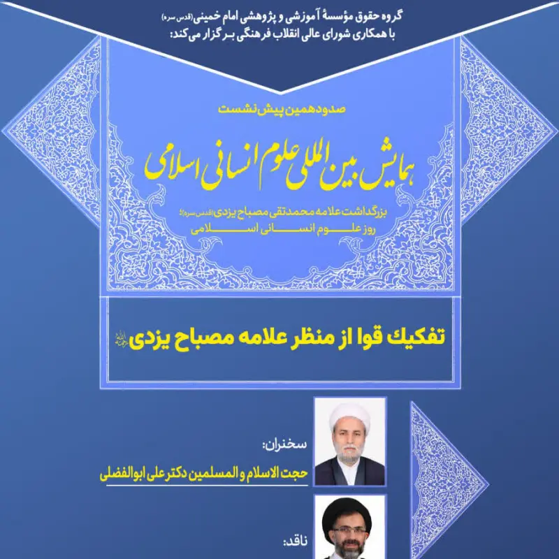 مؤسسه پژوهشی فقه نظام با همکاری مؤسسه آموزشی و پژوهشی امام خمینی(ره) و شورای عالی انقلاب فرهنگی برگزار می‌کنند:   صد و پنجمین پیش‌...