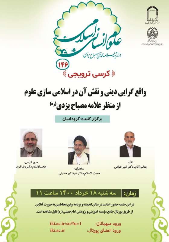 كرسي ترويجي واقع‌گرايي ديني و نقش آن در اسلامي سازي علوم از منظر علامه مصباح يزدي(ره)