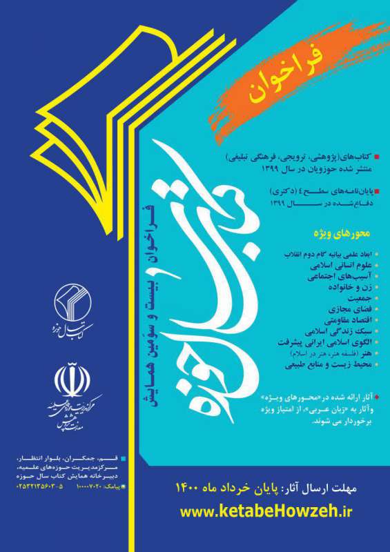 ویژه: کتاب‌های چاپ اول حوزویان در سال 1399  پایان‌نامه‌های سطح4 (دکتری) دفاع شده در سال 1399 مهلت ارسال آثار: 31 خرداد 1400   ثبت‌نام اینترنتی: http://bookr.ismc.ir    ...