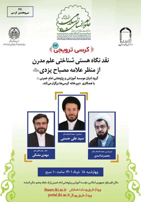 کرسی ترویجی نقد نگاه هستی‌شناختی علم مدرن از منظر علامه مصباح یزدی (ره)