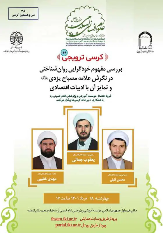 کرسی ترویجی بررسی مفهوم خودگرایی روان‌شناختی درنگرش علامه مصباح یزدی(ره) و تمایز آن با ادبیات اقتصادی