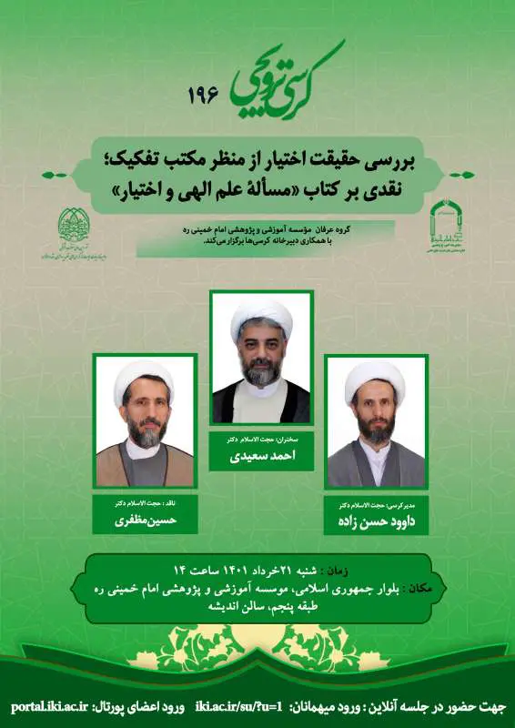 کرسی ترویجی بررسی حقیقت اختیار از منظر مکتب تفکیک؛ نقدی بر کتاب «مسأله علم الهی و اختیار»