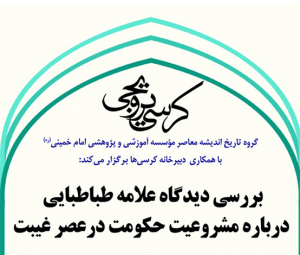 به گزارش روابط عمومی مؤسسه آموزشی و پژوهشی امام خمینی(ره)، کرسی ترویجی با عنوان «بررسی دیدگاه علامه طباطبایی درباره مشروعیت حکومت در عصر غیبت» با سخنرانی حجت الاسلام و المسلمین دکتر مهدی امیدی و نقد و بررسی حجج اسلام آقایان: دکتر عبدالله فتحی و دکتر ابوذر مظاهری از ساعت 18 روز شنبه 18 /9/ 1396 توسط گروه تاریخ اندیشه معاصر در سالن اندیشه مؤسسه امام خمینی(ره) برگزار می شود.