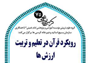 گروه علوم تربیتی مؤسسه آموزشی و پژوهشی امام خمینی (ره) با همکاری سازمان بسیج اساتید و دبیرخانه کرسی ها برگزار می کند: کرسی ترویجی «رویکرد قرآن در تعلیم و تربیت ارزش ها» به گزارش روابط عمومی، کرسی ترویجی «رویکرد قرآن در تعلیم و تربیت ارزش ها» ، با سخنرانی حجت الاسلام دکترسیداحمد رهنمایی، سه شنبه 97/9/13، ساعت 17:45 در سالن اندیشه موسسه امام خمینی (ره) برگزار می شود. حجج اسلام دکتر عباسعلی شاملی و دکتر حمید آریان ناقدان این کرسی ترویجی می باشند و حجت الاسلام مرتضی حدادی پیشه مدیریت این نشست را به عهده دارد.